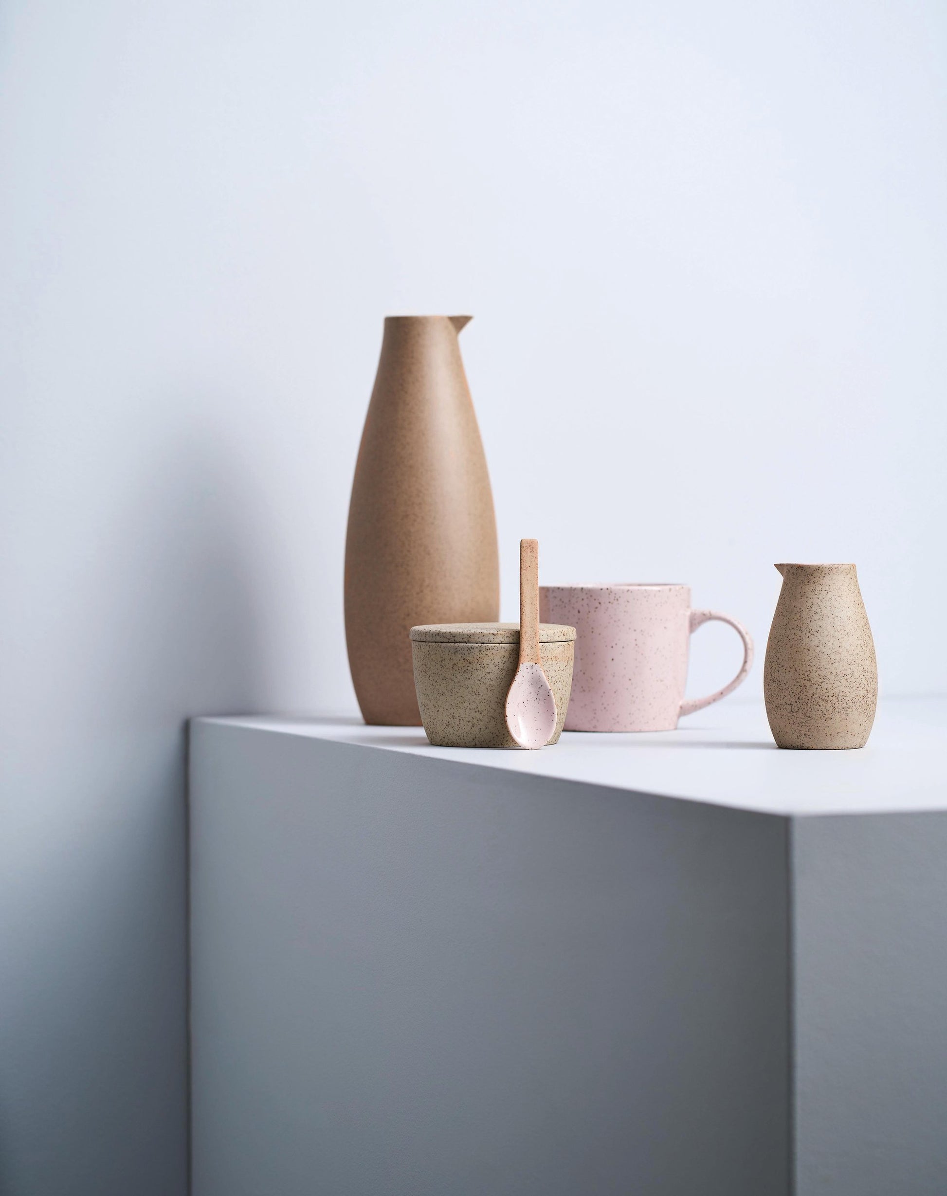 A striking raw exterior and speckled gloss interior make for a beautiful contrast. Granite celebrates the harmony of raw stoneware with gloss glaze in this beautiful collection. Build a complete range with a selection of mugs, lattes, carafes, creamers, sugar bowl and spoon set.